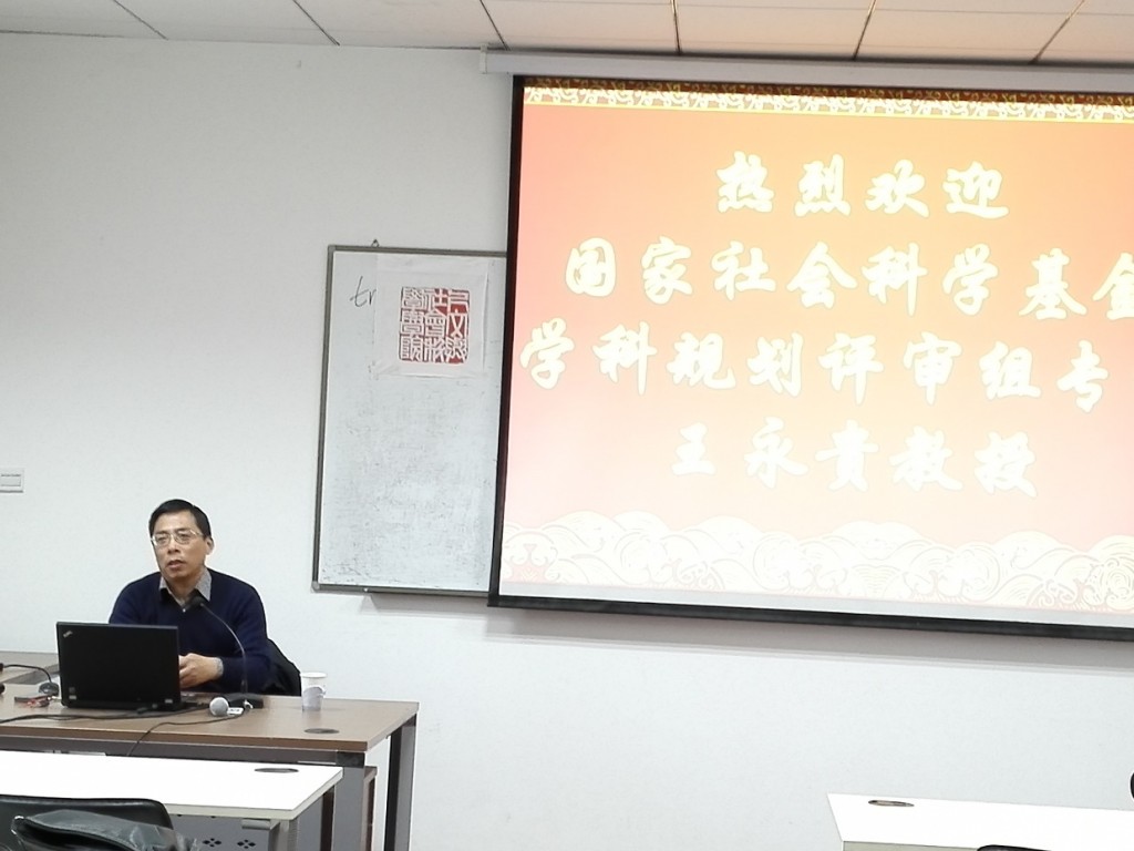 2015年12月3日,国家社会科学基金学科规划评审组专家王永贵莅临我院,做了题为“当前形势下的社会科学研究与项目申报”的讲座,与我院师生展开了深入的学术交流。讲座由平旭院长主持。