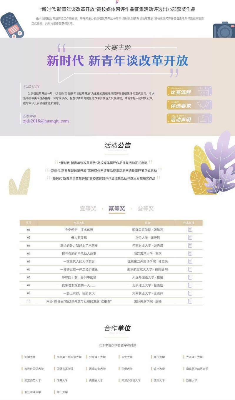 近日,由中央网信办网络评论工作局指导,环球网承办的庆祝改革开放40周年“新时代新青年谈改革开放”高校媒体网评作品征集活动评选结果正式揭晓。在入围的35部作品中,我院硕士研究生陈雷与南航“一分钟团队”合作完成的《一分钟“五位一体”之经济建设》获得二等奖。
