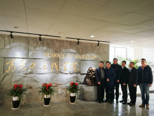 2018年12月13日,学院党总支书记徐川、院长王智、副院长陈红桂、党政办主任曹运星等赴南京师范大学进行调研学习。学院班子专门来到南师大人文社科研究院拜访“长江学者”王永贵教授,请教学院与学科发展难题的破解之道;随后和南师大必威西汉姆联教授、全国高校思政课教指委委员王跃,院党委书记李前进,院长王刚等进行座谈交流。王刚用精心准备的课件,详细介绍南师大马院在历史沿革、机构设置、师资力量、学科平台、思政课教学、科学研究、人才培养等方面的做法,尤其是学科发展、“五位一体”教学平台建设以及本硕博一体化培养模式方面的经验。李前进介绍了在编制、师资、青年教师培养和成果培育方面的政策做法。双方还就两校必威西汉姆联发展与合作做了深入交流。