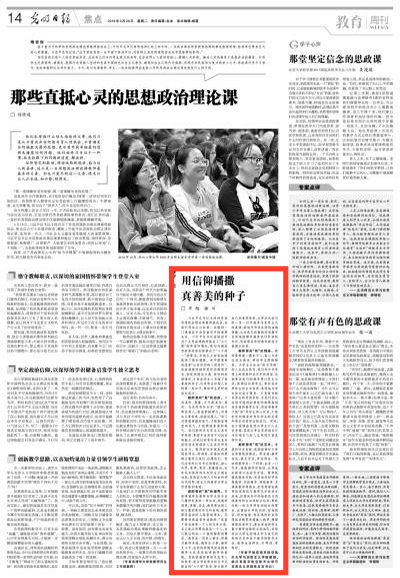 《光明日报》3月26日刊登我院教授平旭、学院党总支书记徐川的文章《用信仰播撒真善美的种子》。