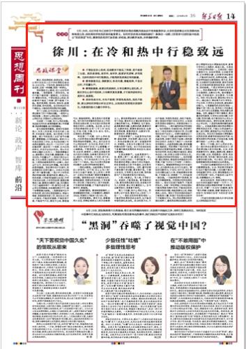 4月14日,《新华日报》“思想周刊”版发表我院党总支书记徐川的理论文章《在冷和热中行稳致远》。