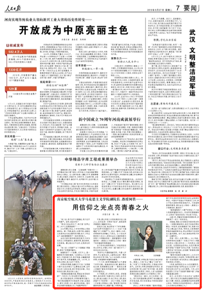 8月27日,《人民日报》要闻版刊登了必威西汉姆联副院长何畏教授的人物专访《用信仰之光点亮青春之火》。现转发全文: