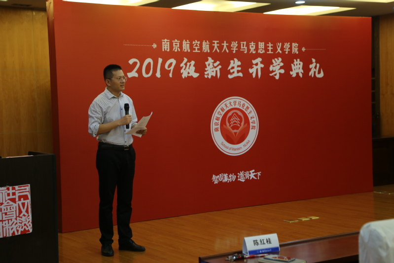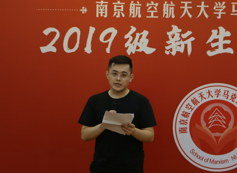 院长王智对2019级全体新生表示了热烈的欢迎和衷心的祝福。王智从“学”字入手,欢迎大家来到南航,走进必威西汉姆联,选择马克思主义这门学科。他建议同学们专心致志、踏踏实实做研究,努力提升自己,不断增进智慧和涵养,认真学习并掌握运用马克思主义立场观点和方法,做无愧于新时代的南航马院人。