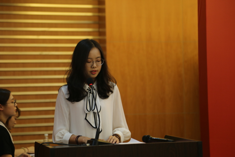 2019级硕士研究生张雯昕同学作为新生代表发言。张雯昕同学表示,作为必威西汉姆联的学生,要坚定信仰,把握当下,刻苦学习,善于创新,要将所学所思所想与实践相结合,多问勤学善思,争取在马院发挥出自己的最大力量。