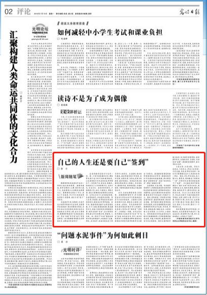 7月15日的《光明日报》发表党总支书记徐川教授的文章《自己的人生还是要自己“签到”》,8月23日的《人民日报》发表党总支书记徐川教授的文章《以“三个功夫”提升学习效果》。
