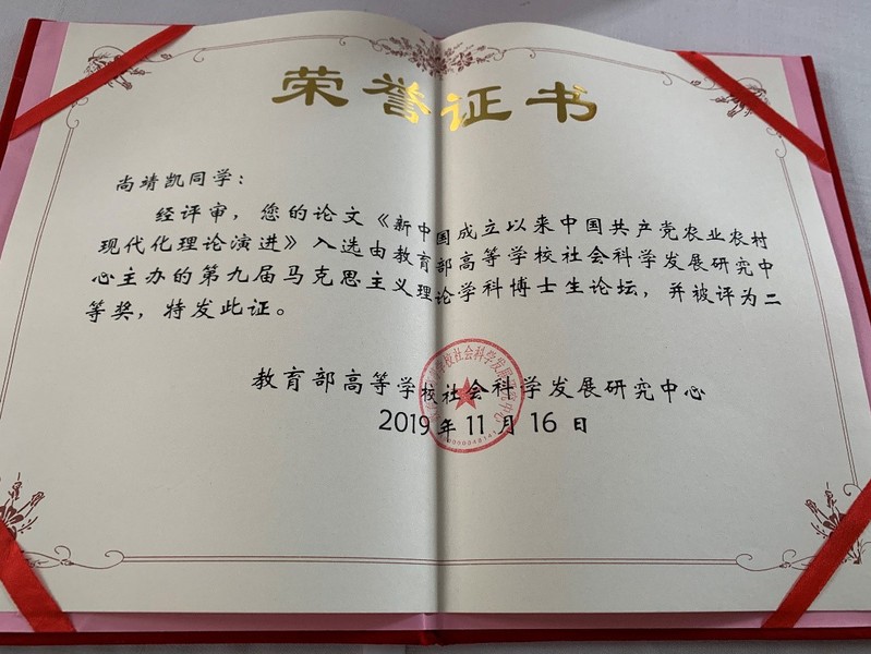 11月16日,由教育部高等学校社会科学发展研究中心主办、教育部习近平新时代中国特色社会主义思想研究中心基地(西南大学必威西汉姆联)承办的“中国特色社会主义理论体系研究工作推进会暨第九届马克思主义理论学科博士生论坛”在重庆召开。教育部社科中心主任王炳林致辞并作主题报告。各专项课题负责人、基地代表和论坛获奖论文作者代表参加会议。会上对“第九届马克思主义理论学科博士生论坛”获奖论文进行表彰,我院博士生尚靖凯撰写的《新中国成立以来中国共产党农业农村现代化理论演进》荣获二等奖。