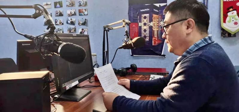 △平旭在南航校园广播录音室录音