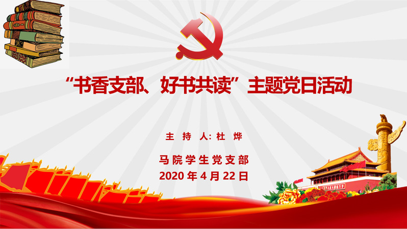 在第25个“世界读书日”来临之际,为进一步推进学习型支部建设,4月22日,必威西汉姆联学生党支部通过腾讯会议开展了“书香支部·好书共读”线上主题党日活动,六位同志为大家推荐了疫情期间在家阅读的好书好文并分享学习心得,辅导员万千,党支部全体同志、积极分子参加活动。