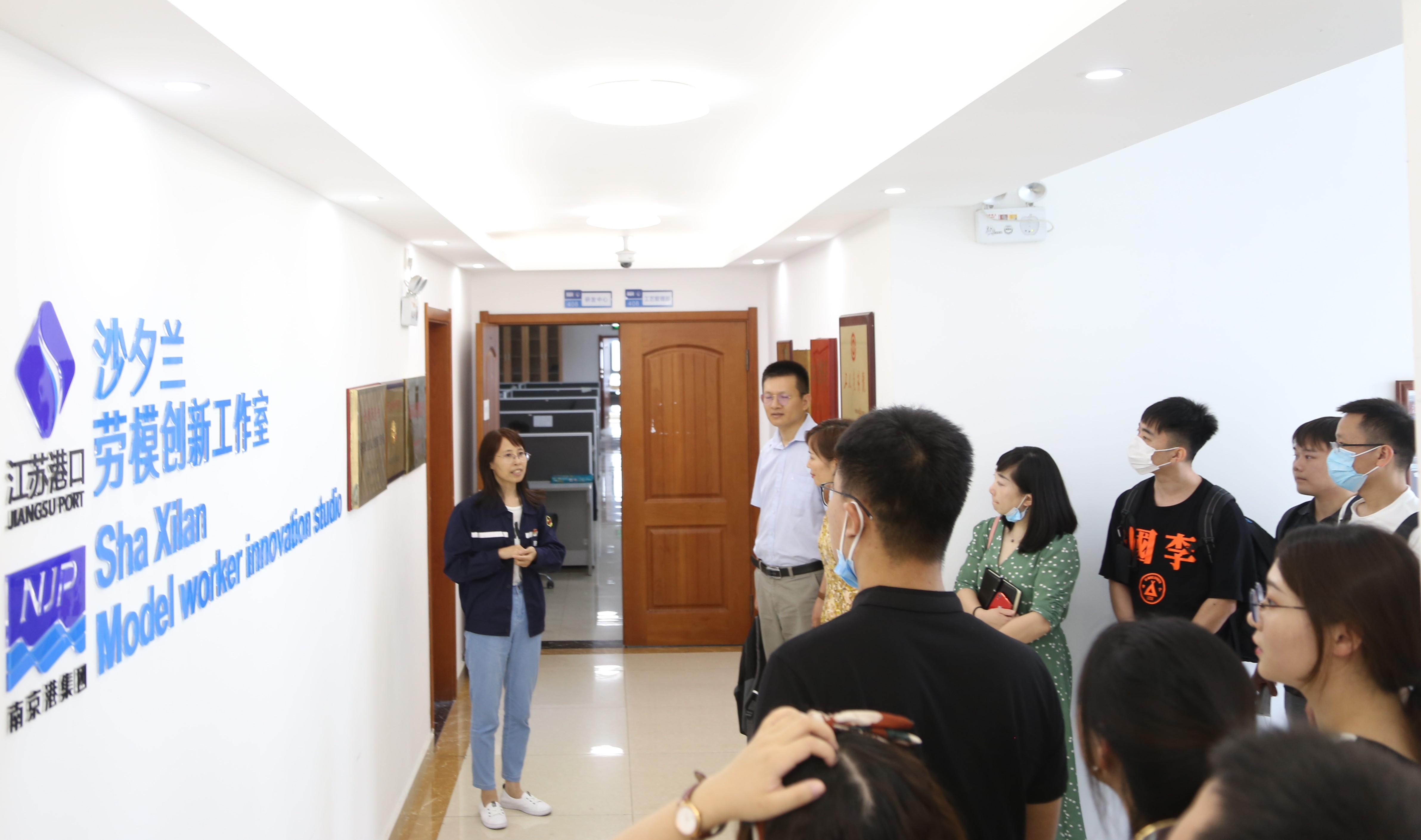 7月10日,由校工会副主席谢瑶、我院副院长兼党总支副书记陈红桂带队,校教师发展与教学评估中心、学生处、团委有关同志,辅导员代表、我院硕博士生代表一行来到南京港机重工制造有限公司参观学习。我校师生一行首先参观了沙夕兰劳模创新工作室,全国五一劳动奖章获得者、全国“十大最美职工”、江苏省劳动模范沙夕兰为师生讲解了工作室的运行情况和科研成果。交流会上,南京港机重工党委书记张福俊介绍了企业基本情况和劳模沙夕兰的事迹,沙夕兰讲述了她多年对劳动与拼搏的认识,勉励同学们永葆初心,勇攀高峰,用劳动铸就最美人生。谢瑶、陈红桂代表校工会和马院对南京港机重工的精心安排表示感谢,并邀请劳模思政导师秋季学期到校宣讲。活动最后,我院学生党员理论宣讲团成员贺浩旗、王苏婉为南京港机青年党员职工们讲授了精彩的微党课。
