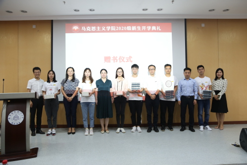 在赠书环节,与会领导向新生代表赠送《马克思恩格斯选集》四卷和《习近平谈治国理政》三卷,希望同学们能进一步加强研究中对经典原著的运用,着力提升马克思主义理论研究的学术涵养、铸就信仰根基。