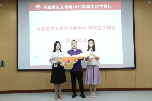 副院长何畏代表学院正式向学生交付了全新建设的马克思主义理论文献中心和研究生工作室,鼓励同学们在经典文献中汲取思想的力量,在学习好马克思主义理论的同时塑造好马克思主义者的人格。