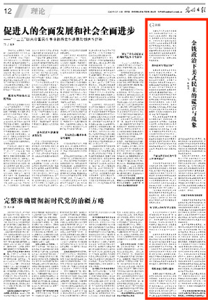 10月16日,《光明日报》第12版刊发我院硕士生导师、靳晓霞副教授的文章《金钱政治下美式民主的谎言与乱象》,现将全文转发如下: