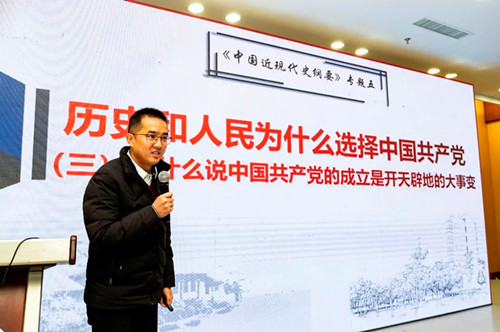 全国高校青年教师教学竞赛思政课专项组一等奖获得者、央视《百家讲坛》《中国精神》主讲人、大型理论宣讲节目《思想的力量》第二季主讲人,南京师范大学必威西汉姆联形势与政策教研部主任、硕士生导师、王磊副教授进行了示范微课:为什么说中国共产党的成立是开天辟地的大事变。