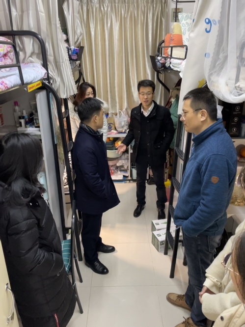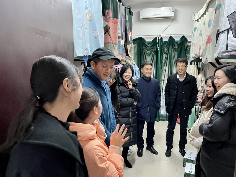 院领导首先来到我院研究生位于11栋和35栋的宿舍,询问了大家元旦节期间的日程和期末的学业情况。徐川书记肯定了寝室的整洁表现,提醒大家坚决杜绝违章电器,人员离开要及时关闭电源,避免因为小小的大意而带来严重的后果。