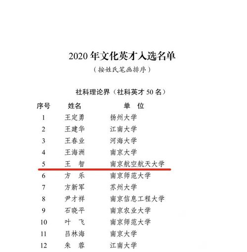 近日,江苏省委宣传部公布了“紫金文化人才培养工程”文化英才和文化优青入选名单,我院王智教授入选2020年文化英才(全省社科理论界共50名)。