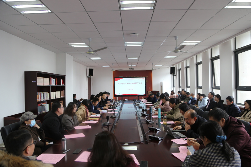 院长王智,副院长何畏、陈红桂就本年度学科建设、师资队伍、研究生培养、科学研究、思政课教学、学生教育管理、对外交流方面工作任务进行了解读和部署,院长助理、工会主席、党政办主任曹运星通报了学院2020年度的工会工作以及财务情况。
