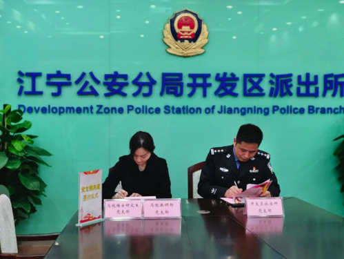 为贯彻习近平总书记在党史学习教育动员大会上的讲话精神,积极党史学习教育,4月2日,我院马克思主义基本原理教研部党支部、博士生党支部与江宁开发区派出所党支部举行警校党组织结对共建签约仪式并开展共建系列活动。江宁开发区派出所所长、党支部书记吴正武、教导员汪裕川、副所长李凯、万富强、朱玉华,必威西汉姆联党委副书记陈红桂、党委委员徐军,以及两个党支部的十余名党员代表参加了此次活动。
