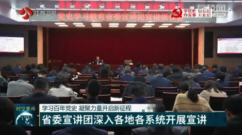 4月9日,党史学习教育省委宣讲团分赴南通、泰州和盐城等地做专题报告,宣讲团成员还走进省工信、卫生、财政和民政系统,与广大党员干部群众互动交流。