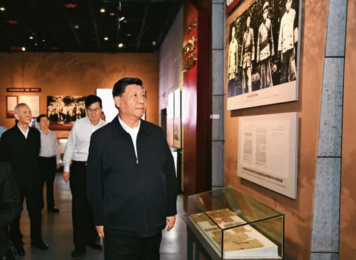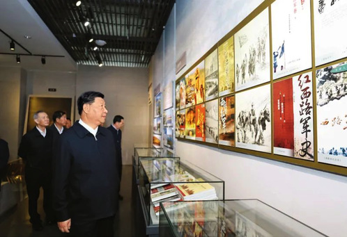 2019年5月20日至22日,中共中央总书记、国家主席、中央军委主席习近平在江西考察,主持召开推动中部地区崛起工作座谈会并发表重要讲话。这是习近平在赣州市于都县中央红军长征出发纪念馆参观,缅怀当年党中央和中央红军在苏区浴血奋战的峥嵘岁月。新华社记者 谢环驰/摄