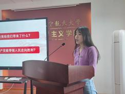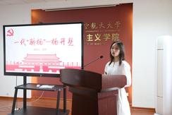 首先,由初赛选拔出的十名选手依次进行了激烈角逐。李哲、宋青励、施张桐从宏观角度对百年党史进行了总体介绍;王梦迪、马晓萌、姜明敏从中观角度对抗日战争的历史意义、马克思主义在中国的早期传播、沙海变绿洲等具体领域和重要方面进行了讲述;陈琳、贾会娟、王棋、周蕾从微观角度对中国共产党命名问题、雨花英烈精神、革命烈士杨开慧的事迹、“红船精神”等方面进行介绍。每位同学宣讲结束后抽取一道党史知识测试题进行作答,评委老师根据每位选手综合表现进行打分。