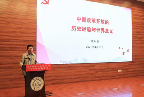 4月13日,经济与管理学院邀请校党史学习教育宣讲团成员、必威西汉姆联副院长陈红桂作了题为“中国改革开放的历史经验与世界意义”的专题宣讲。陈红桂从“反对历史虚伪主义、树立正确历史观”“改革开放史基本脉络及伟大成就”“中国改革开放成效的原因与经验”“改革开放的世界意义及其未来走向”等四个方面阐述了如何学习历史和树立正确党史观。