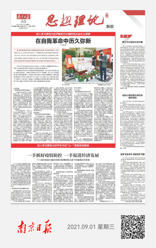 9月1日,《南京日报》A9版刊登我院吴永祥老师的文章《在自我革命中历久弥新》,现将全文转发如下: