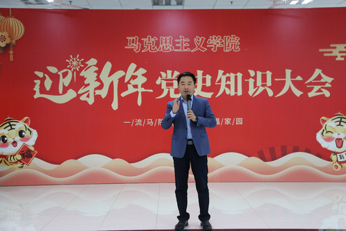 学院院长王智向全院师生致新年贺词,祝福马院师生学习工作生活顺利、马院建设越来越好。