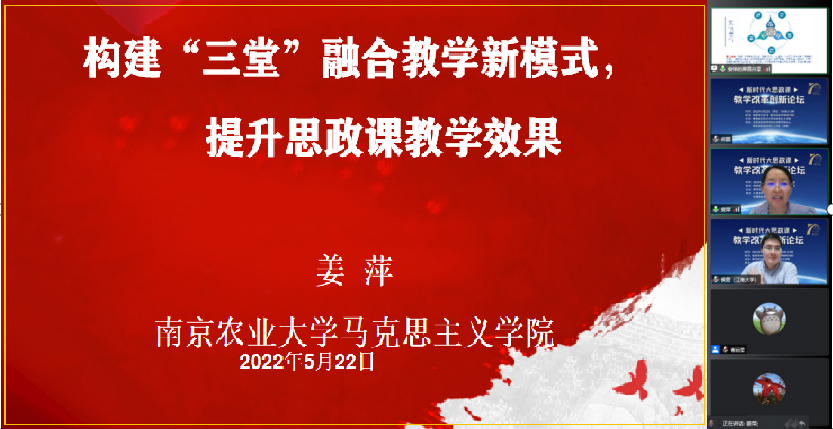 南京农业大学必威西汉姆联姜萍副院长着重分享了构建“三堂”融合教学新模式,提升思政课教学效果的创新举措。她介绍了南京农业大学思政课教学围绕农业高校强农兴农使命,不断探索思政课教学新模式,着力提升思政课铸魂育人实效。通过强化理论主课堂、拓展社会大课堂、架设网络新课堂“三堂融合”立体化教学,构建知农爱农思政育人创新体系,全面推动习近平新时代中国特色社会主义思想进教材进课堂进学生头脑,培养“一懂两爱”的新时代社会主义建设者和接班人。