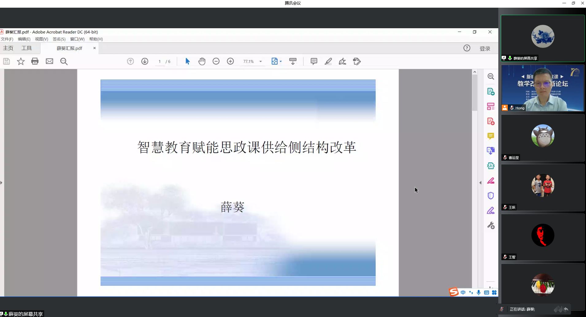 薛葵老师以“智慧教育赋能思政课供给侧结构改革”为题进行教学经验分享。她一方面主张从课前、课中和课后的教学全过程中精化有效供给的内容。另一方面,提出通过智慧平台实现师生互动、生生互动、人机互动、人际互动,把思政课的“一对多”转化为“多对多” “一对一”,激发调动学生的自主学习热情和潜力,从而创新有效供给的方式。通过思政课教学,引导学生掌握历史规律,培养思维方式,构筑开启有意义人生道路的“能力加油站”。