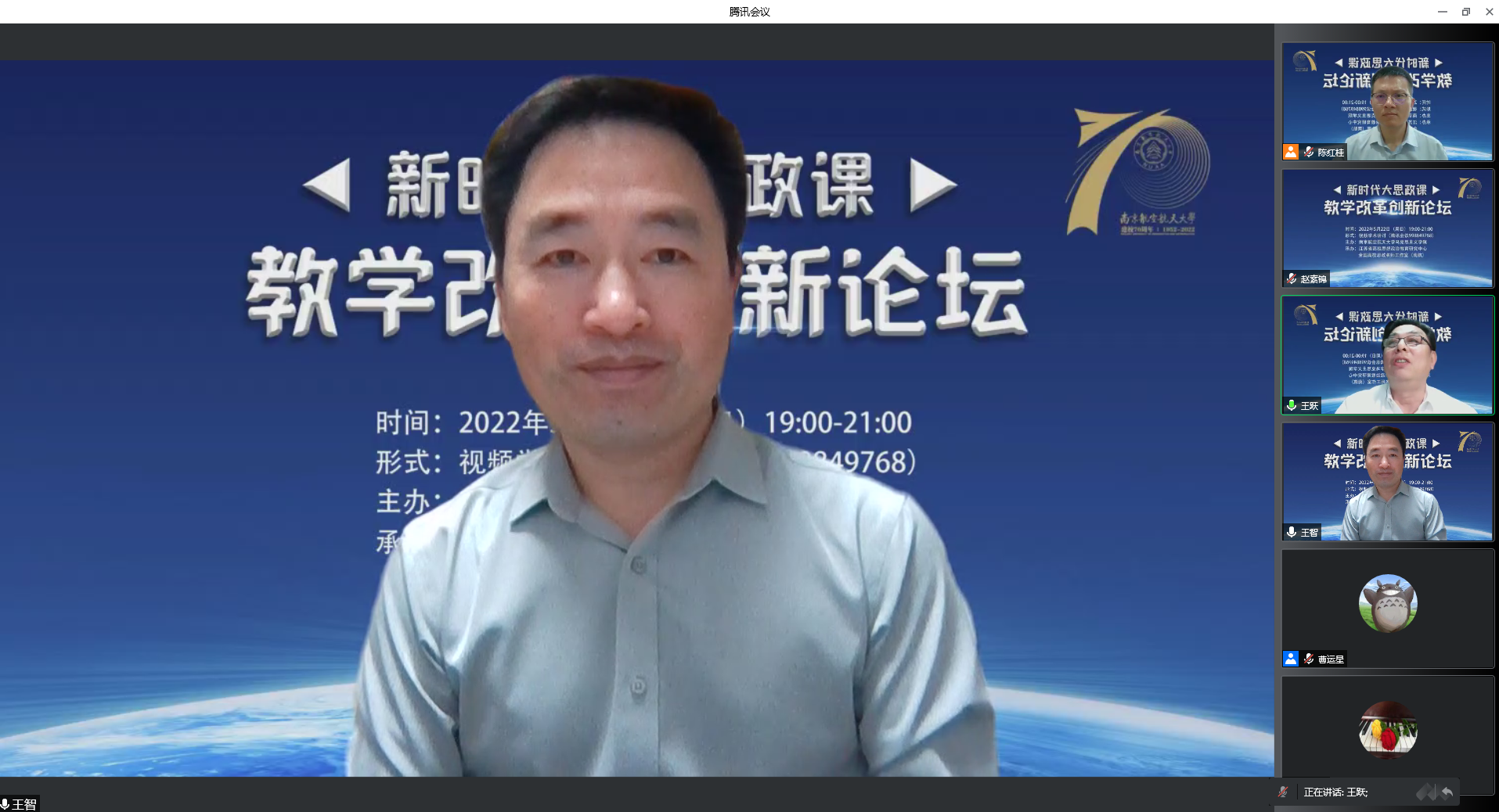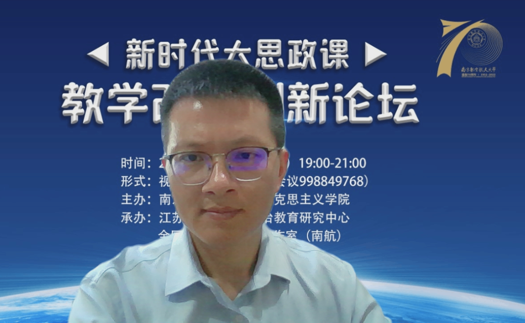 2022年5月22日,由必威西汉姆联、江苏省高校思想政治教育研究中心、全国高校思政名师工作室(南航)主办的新时代大思政课教学改革创新论坛在我院召开。来自南京大学、南京师范大学、苏州大学、河海大学、南京农业大学、江南大学、南京艺术学院等多所高校的专家学者,以线上方式参加了本次论坛。
