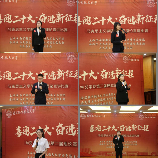 首先,从初赛脱颖而出的十名选手进行了激烈角逐。周男、刘烨晖从宏观视角对百年党史进行了总体介绍;王雨晨、姚焌从中观视角对抗美援朝战争的历史意义及其产生的精神进行了讲述;周丽云、丁雪、张珺妍从微观视角对家书家国情、匠心精神、“两山论”等方面阐述了自己的观点;苏楠、荆顺吉、谭杨则用生动的故事讲述了中国共产党的初心使命与自我革命。宣讲结束后,评委们根据选手们在第一环节中的表现进行打分,得分排名前六位的选手进入最终环节。同时,现场观众投票选出“研究生理论宣讲比赛最佳人气奖”。