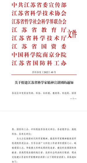 为深入贯彻落实习近平总书记重要讲话精神,大力弘扬科学家精神,涵养优良学风,省科协联合省委宣传部、省社科联、省教育厅、省科技厅、省国资委、中科院南京分院、省国防科工办共同组建江苏省科学家精神宣讲团。宣讲团首批成员由20名个人成员和10支团体成员组成。