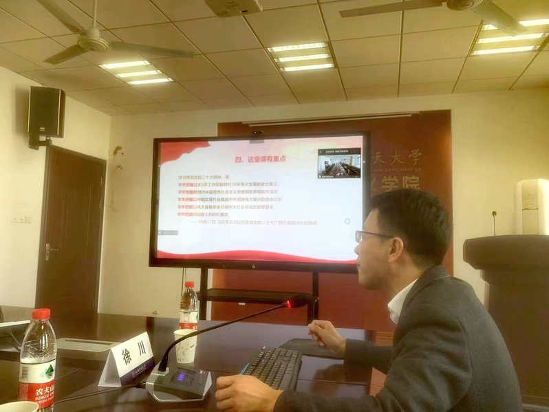 徐川为联学共建支部全体党员讲授专题党课,分享了自己参加党的二十大、学习党的二十大精神的感悟与体会。