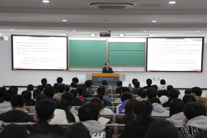 为深入学习贯彻党的二十大精神,全面实施新时代人才强校战略,切实加强我校思想政治理论课教师队伍建设,11月17日,校长单忠德院士在天目湖校区以“马克思主义中国化时代化新的飞跃”为主题为我校本科生讲授思政公开课。必威西汉姆联青年教师代表、电子信息工程学院/集成电路学院2021级本科生等200余名师生参加学习。