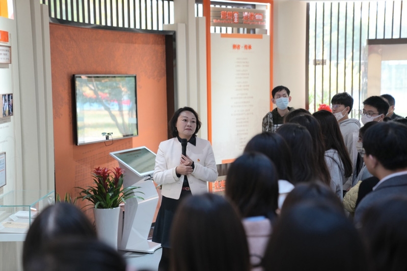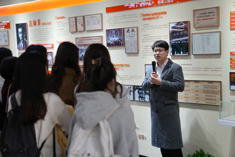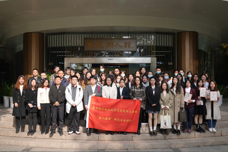 王晖带领两支部党员深入学习参观立德树人馆并做主题党课。她详细阐释了邓永清、吴继周、范绪箕三位建校元老的办学思想、教育理念和崇高精神,同学们深刻理解和感受了到老一辈南航人以德立身、以德立学、以德施教,实现南航四次历史性跨越发展的精神密码,王晖指出,“昨天为祖国战斗,现在为祖国学习”的铮铮誓言正是现在“为党育英才、为国铸重器”的铿锵表达,马院学生要立足专业,从榜样前辈身上汲取力量,结合南航学科优势和特色文化,讲好南航故事,传承和弘扬南航的红色基因和蓝色梦想。