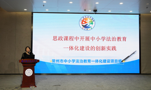 常州市教育科学研究院思政教研员戴慧老师以《思政课程中开展中小学法治教育一体化建设的创新实践》为题作主旨报告,全面展示了江苏省前瞻性教改项目的研究情况,并部署了下一阶段大中小学思政课一体化建设的工作。