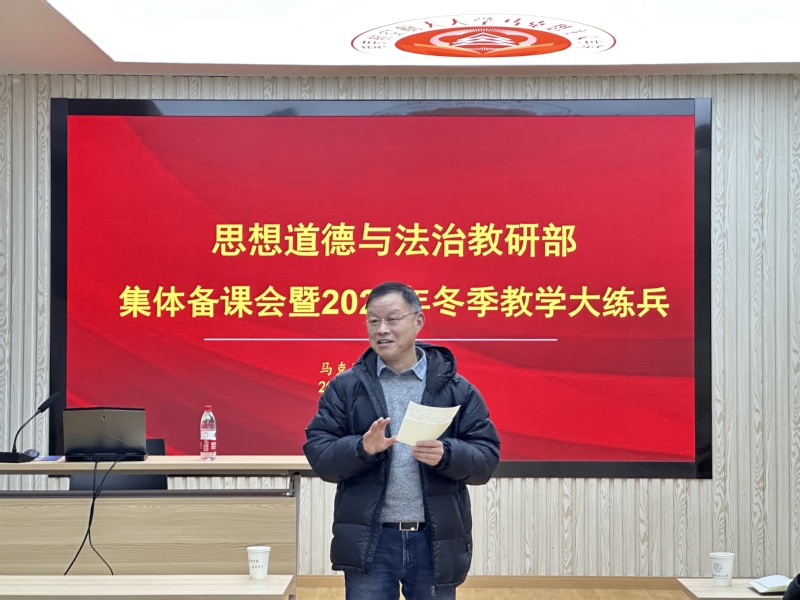 根据学院工作安排和统一部署,12月16日下午,思想道德与法治教研部集体备课会暨2023年教学大练兵在学院112报告厅举行,会议由教研部主任董金平主持。此次活动主要分两个环节,一是青年教师进行课堂授课展示,二是其他教师进行说课分享及教学研讨。