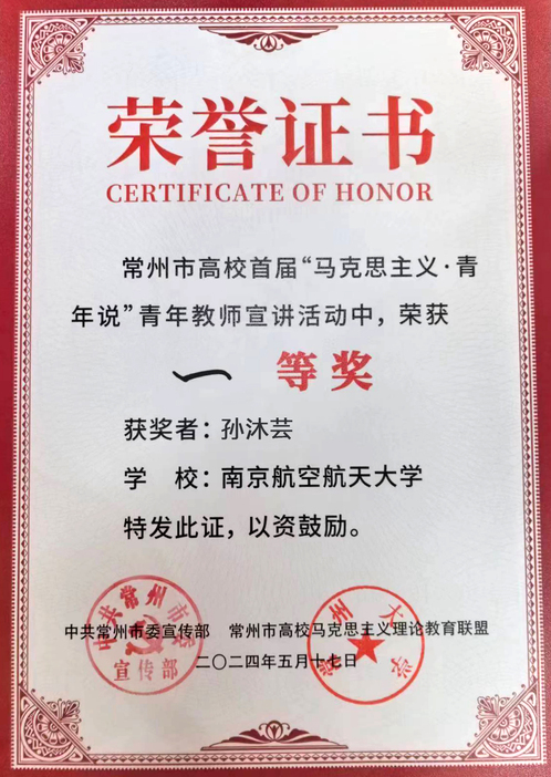 近日,由中共常州市委宣传部、常州市高校马克思主义理论教育联盟主办的“马克思主义·青年说”青年教师理论宣讲活动中,我院教师孙沐芸荣获一等奖。