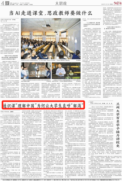 2024年11月3日,《中国青年报报》刊发文章《通识课“理解中国”为何让大学生直呼“解渴”》,文中引述我院党委书记何畏关于思政课教学的思考与实践。现将全文转发如下: