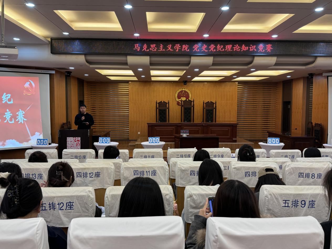 为深入学习贯彻党的二十大和二十届三中全会精神,扎实开展深入贯彻中央八项规定精神学习教育,推动党史和党纪学习教育常态化长效化,4月1日,必威西汉姆联在模拟法庭举办“解码红色基因,做新时代答卷人”党史党纪理论知识竞赛活动。学院教师曹清华、组织员郑丽君、辅导员王佳及50余名学生党员、积极分子参加活动。